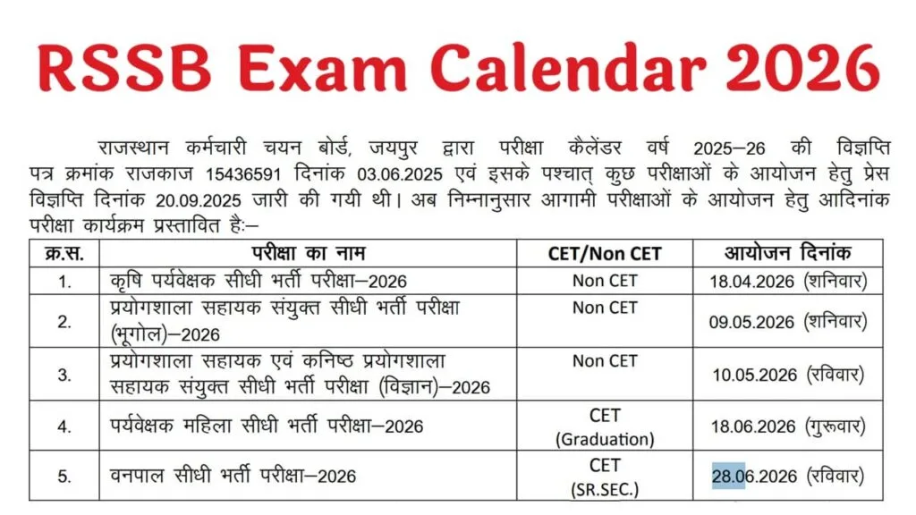 RSSB परीक्षा कैलेंडर 2026 नवीनतम समाचार